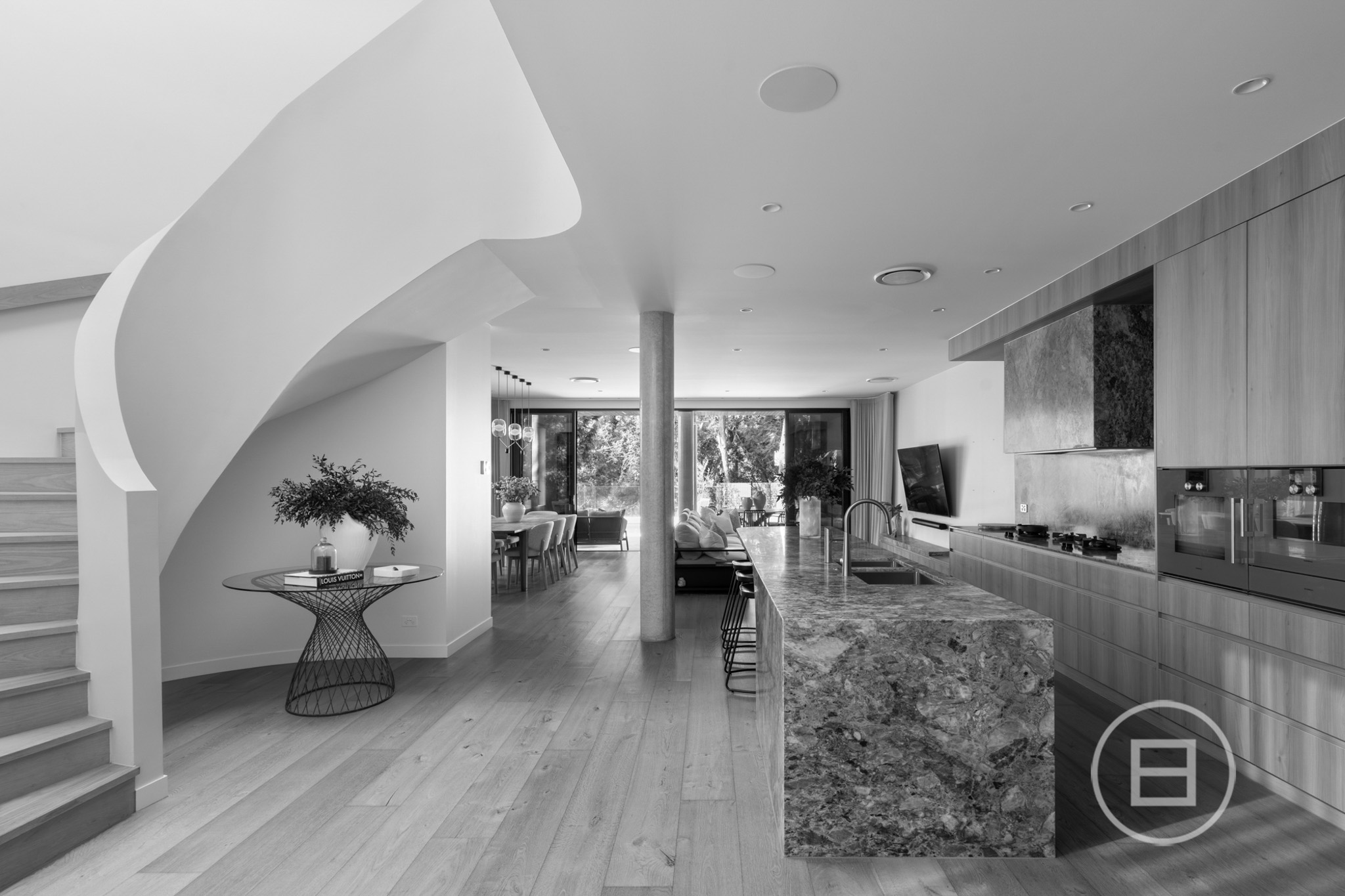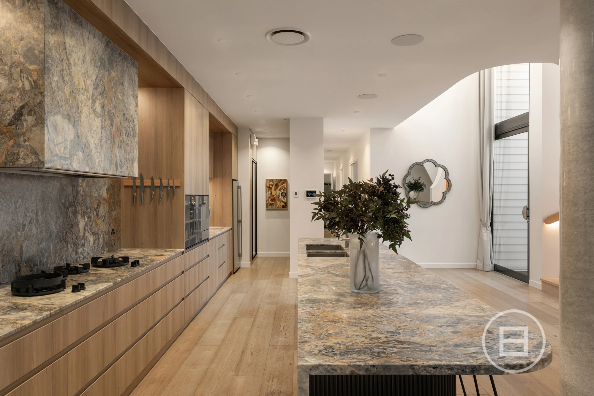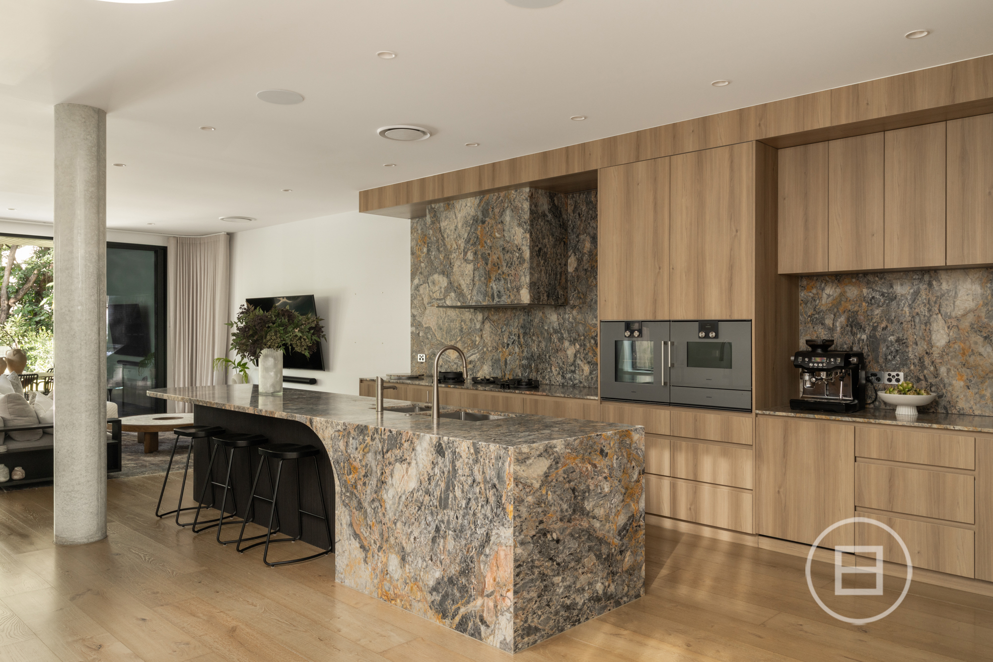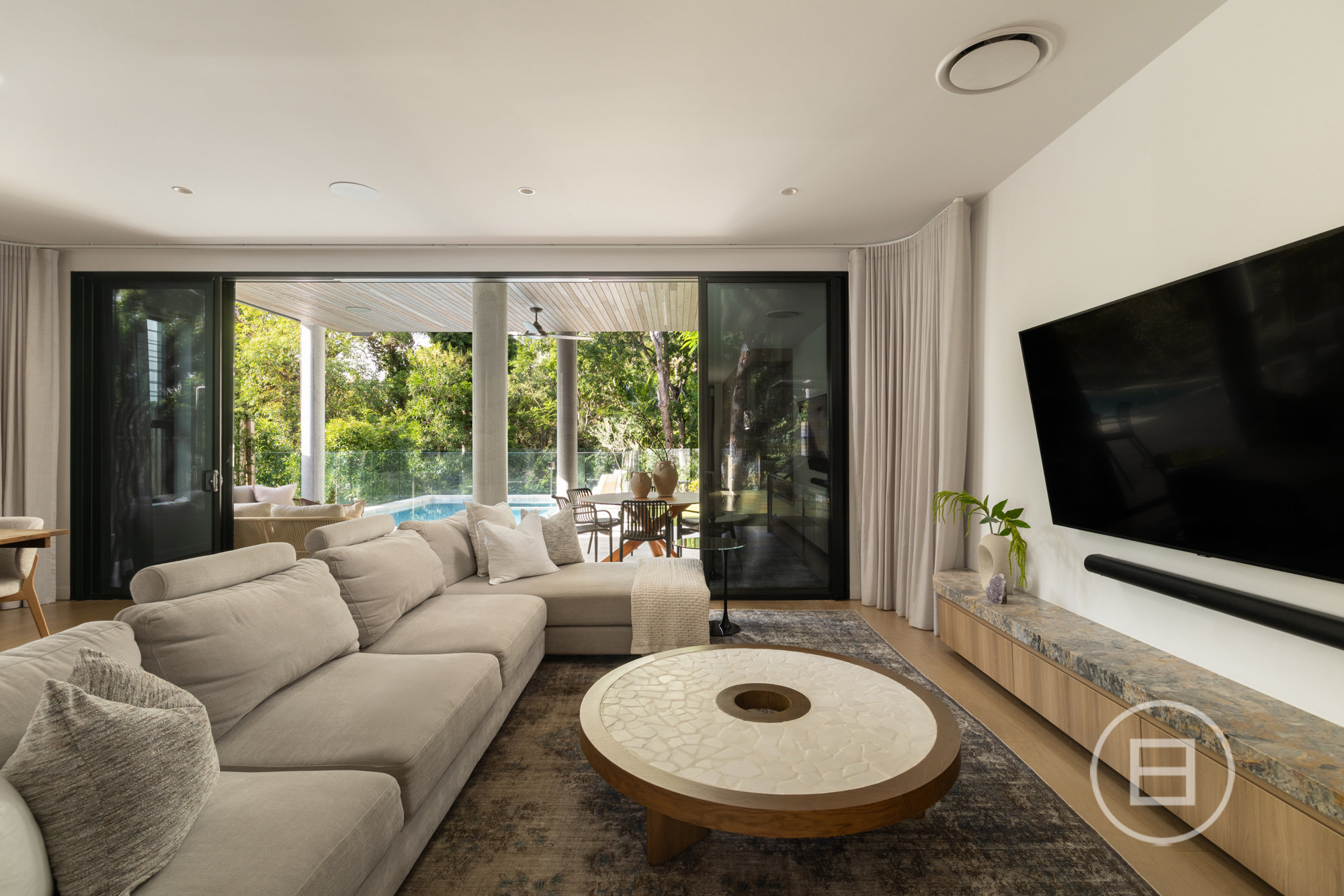 Set on 604m2 of land with close to 550m2 of living, the home demonstrates a level of planning, execution and specification rarely seen. Concrete construction, full home automation and a highly resolved lighting design form the foundation, while exceptional natural stone, sourced locally here in Queensland defines the material palette throughout.